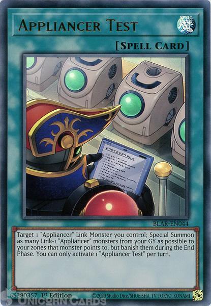 - BLAR-EN044 Appliancer Test Ultra Rare 1st Edition Mint YuGiOh Card