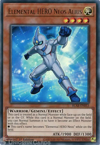 - BLAR-EN053 Elemental HERO Neos Alius Ultra Rare 1st Edition Mint YuGiOh Card