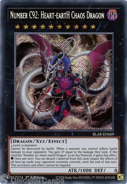 - BLAR-EN069 Number C92: Heart-eartH Chaos Dragon Secret Rare 1st Edition Mint YuGiOh Card