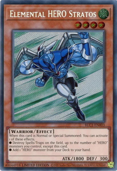 - BLC1-EN003 Elemental HERO Stratos : Secret Rare Limited Edition YuGiOh Card