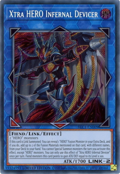 - BLC1-EN009 Xtra HERO Infernal Devicer : Secret Rare Limited Edition YuGiOh Card