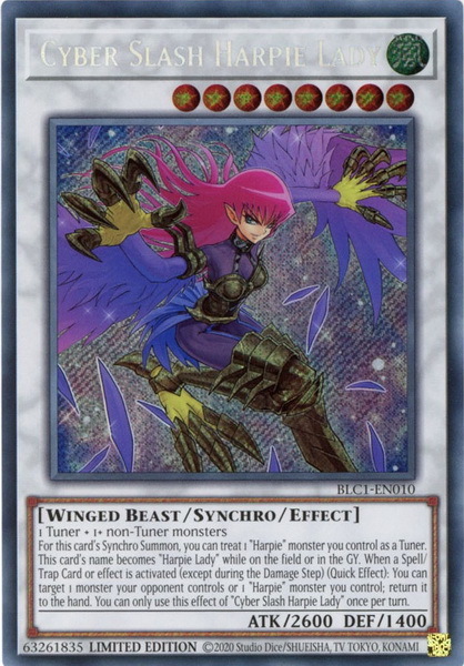- BLC1-EN010 Cyber Slash Harpie Lady : Secret Rare Limited Edition YuGiOh Card