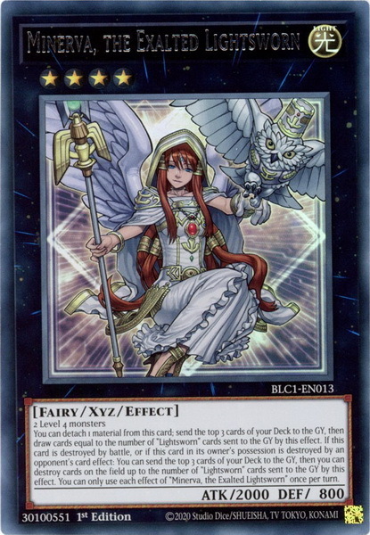 - BLC1-EN013 Minerva, the Exalted Lightsworn : Silver Ultra Rare 1st Edition YuGiOh Card