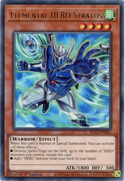 - BLC1-EN022 Elemental HERO Stratos : Gold Ultra Rare 1st Edition YuGiOh Card