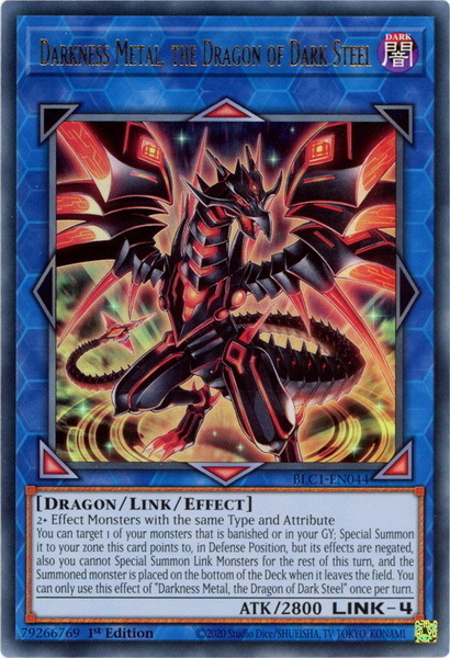 - BLC1-EN044 Darkness Metal, the Dragon of Dark Steel : Gold Ultra Rare 1st Edition YuGiOh Card