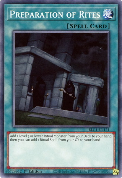 - BLC1-EN121 Preparation of Rites : Common 1st Edition YuGiOh Card