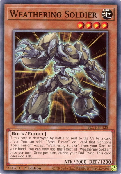 - BLC1-EN128 Weathering Soldier : Common 1st Edition YuGiOh Card