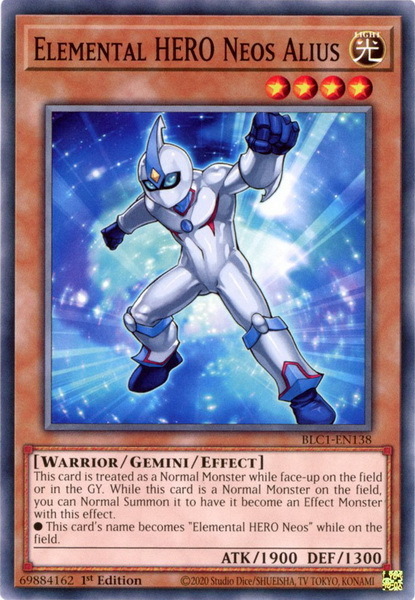 - BLC1-EN138 Elemental HERO Neos Alius : Common 1st Edition YuGiOh Card