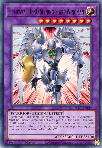 - BLC1-EN139 Elemental HERO Shining Flare Wingman : Common 1st Edition YuGiOh Card