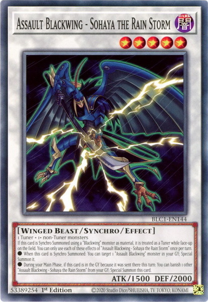 - BLC1-EN144 Assault Blackwing - Sohaya the Rain Storm : Common 1st Edition YuGiOh Card