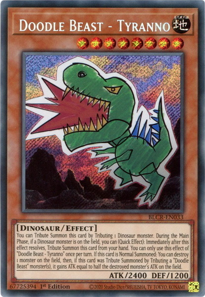 - BLCR-EN033 Doodle Beast - Tyranno :: Secret Rare 1st Edition Mint YuGiOh Card