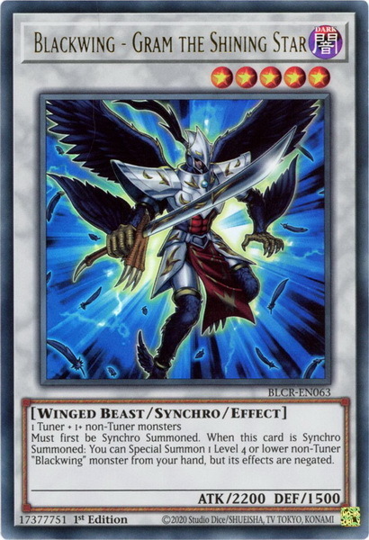 - BLCR-EN063 Blackwing - Gram the Shining Star :: Ultra Rare 1st Edition Mint YuGiOh Card