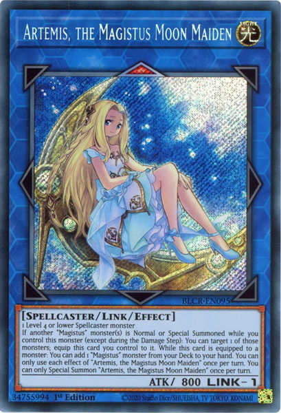 - BLCR-EN095 Artemis, the Magistus Moon Maiden :: Secret Rare 1st Edition Mint YuGiOh Card