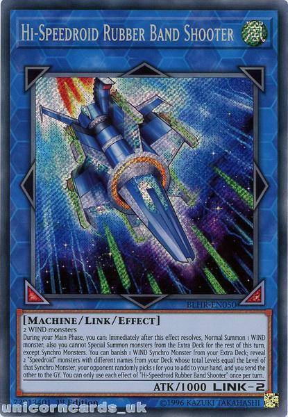 - BLHR-EN050 Hi-Speedroid Rubber Band Shooter Secret Rare 1st Edition Mint YuGiOh Card