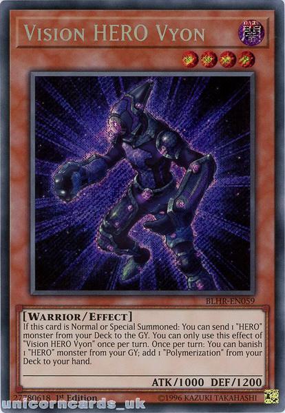 - BLHR-EN059 Vision HERO Vyon Secret Rare 1st Edition Mint YuGiOh Card