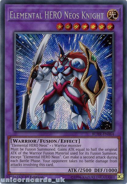 - BLHR-EN064 Elemental HERO Neos Knight Secret Rare 1st Edition Mint YuGiOh Card