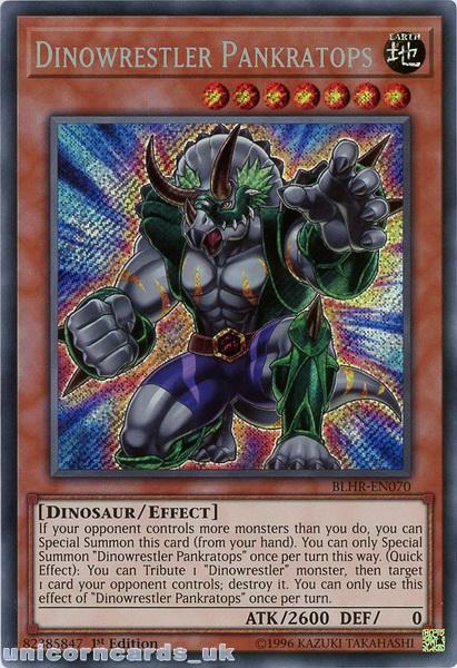 - BLHR-EN070 Dinowrestler Pankratops Secret Rare 1st Edition Mint YuGiOh Card