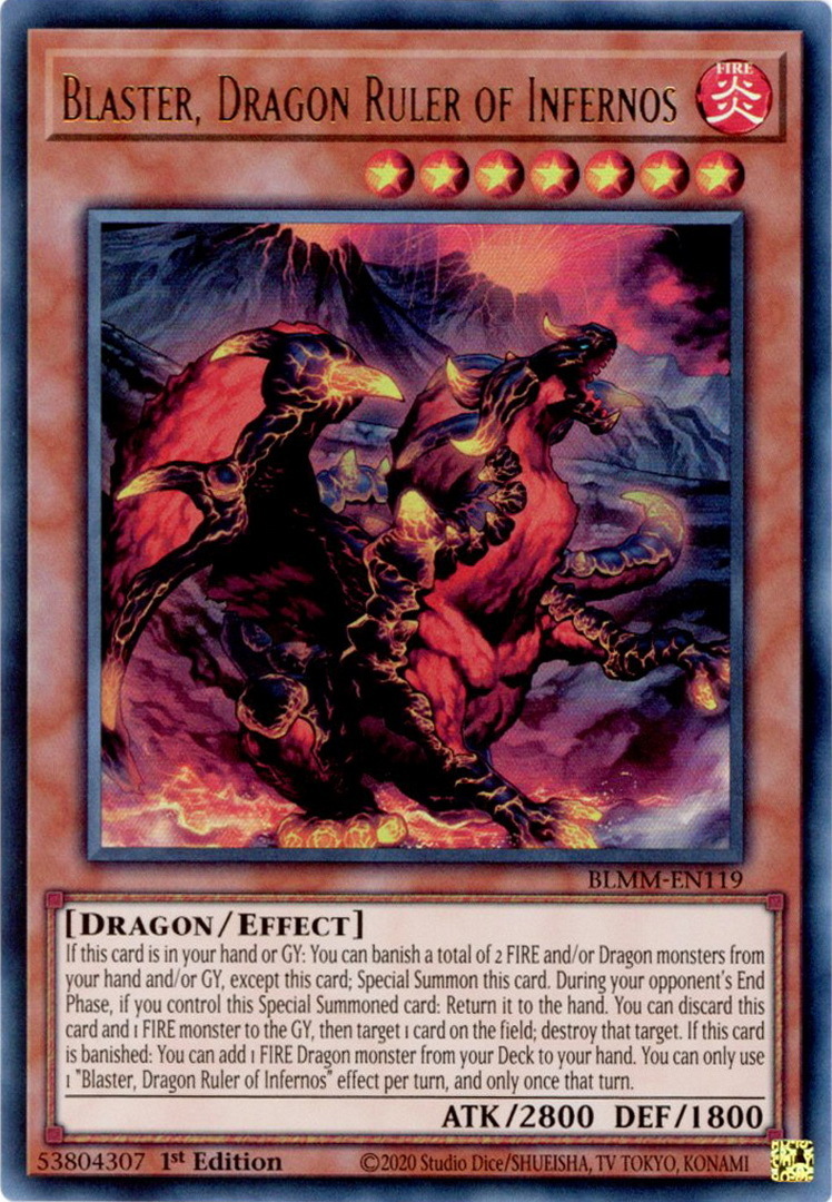 - BLMM-EN119 Blaster, Dragon Ruler of Infernos : Ultra Rare 1st Edition Mint YuGiOh Card