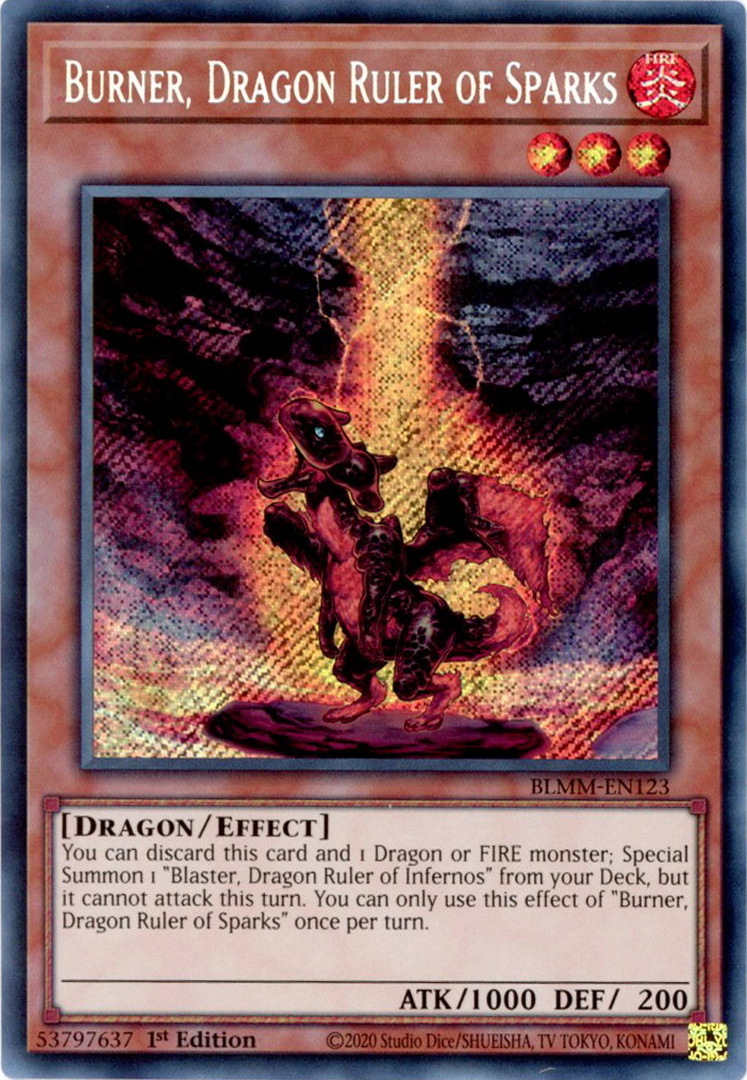 - BLMM-EN123 Burner, Dragon Ruler of Sparks : Secret Rare 1st Edition Mint YuGiOh Card