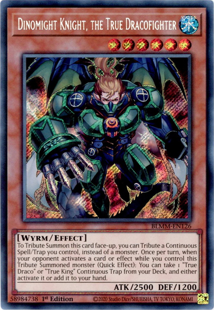 - BLMM-EN126 Dinomight Knight, the True Dracofighter : Secret Rare 1st Edition Mint YuGiOh Card