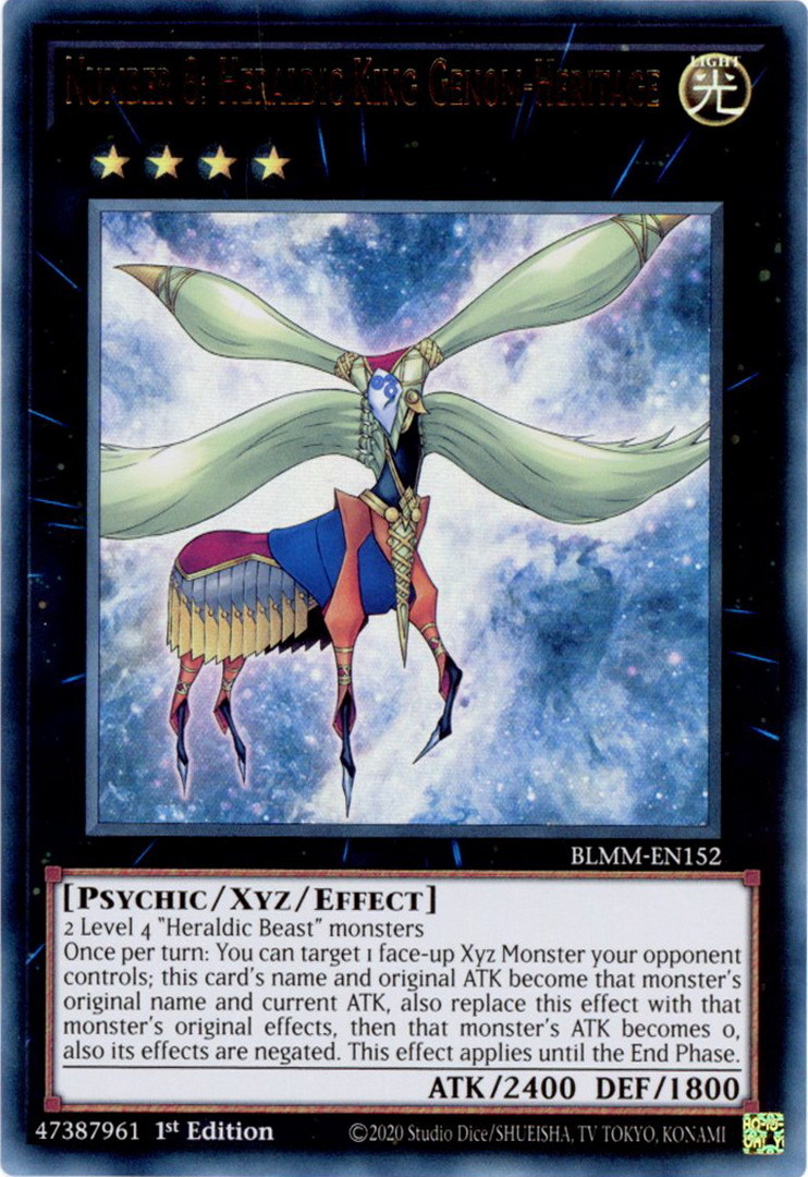 - BLMM-EN152 Number 8: Heraldic King Genom-Heritage : Ultra Rare 1st Edition Mint YuGiOh Card