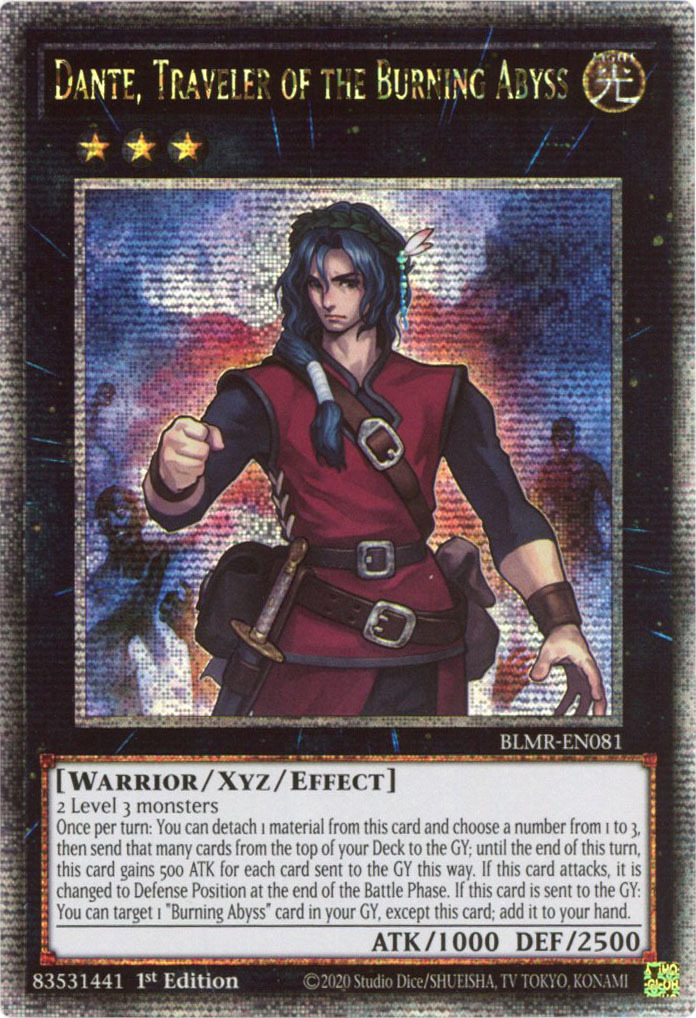 - BLMR-EN081 Dante, Traveler of the Burning Abyss :: Quarter Century Secret Rare 1st Edition Mint YuGiOh Card