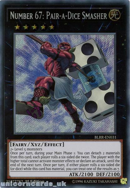 - BLRR-EN031 Number 67: Pair-a-Dice Smasher Secret Rare 1st Edition Mint YuGiOh Card