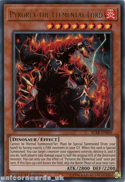 - BLRR-EN069 Pyrorex the Elemental Lord Ultra Rare 1st Edition Mint YuGiOh Card