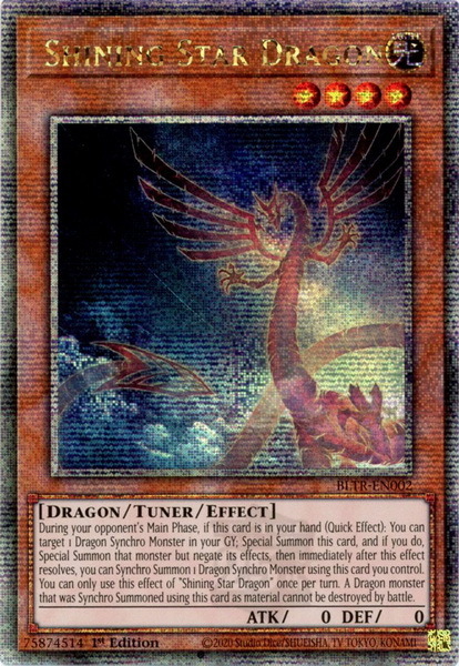 - BLTR-EN002 Shining Star Dragon : Quarter Century Secret Rare 1st Edition YuGiOh Card