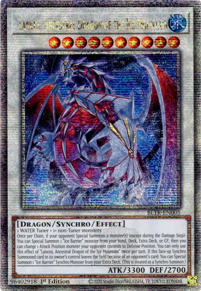 - BLTR-EN005 Lancea, Ancestral Dragon of the Ice Mountain : Quarter Century Secret Rare 1st Edition YuGiOh Card