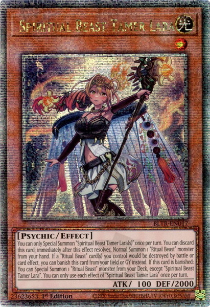 - BLTR-EN017 Spiritual Beast Tamer Lara : Quarter Century Secret Rare 1st Edition YuGiOh Card