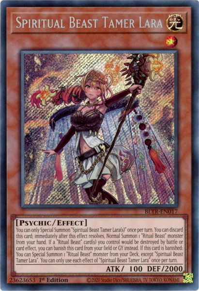 - BLTR-EN017 Spiritual Beast Tamer Lara : Secret Rare 1st Edition YuGiOh Card