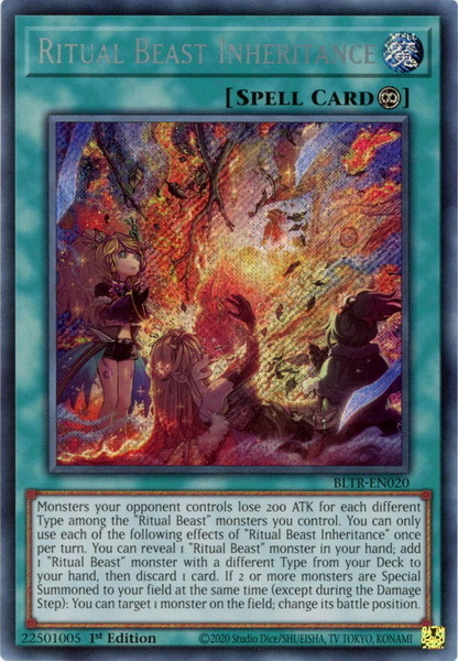 - BLTR-EN020 Ritual Beast Inheritance : Secret Rare 1st Edition YuGiOh Card