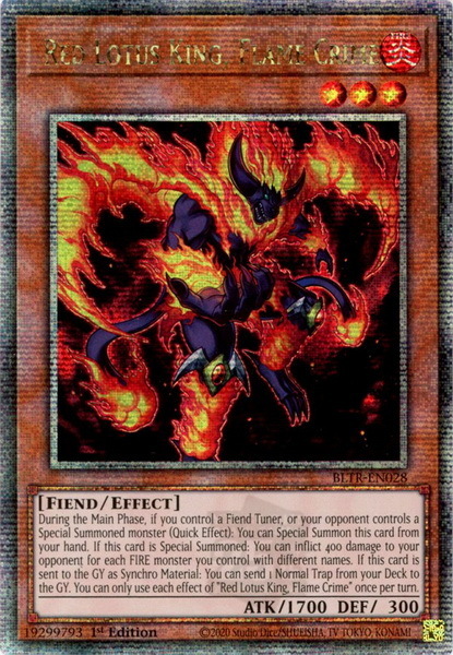 - BLTR-EN028 Red Lotus King, Flame Crime : Quarter Century Secret Rare 1st Edition YuGiOh Card