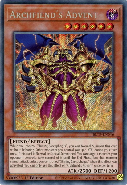 - BLTR-EN046 Archfiend's Advent : Secret Rare 1st Edition YuGiOh Card