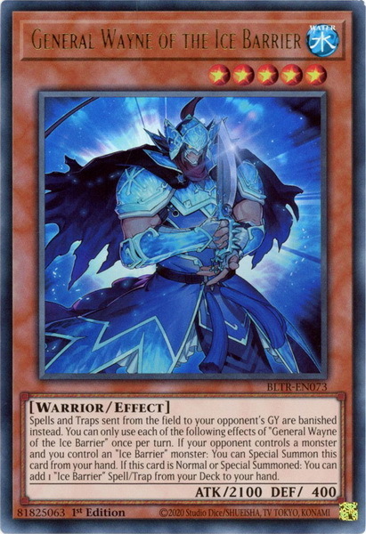 - BLTR-EN073 General Wayne of the Ice Barrier : Ultra Rare 1st Edition YuGiOh Card