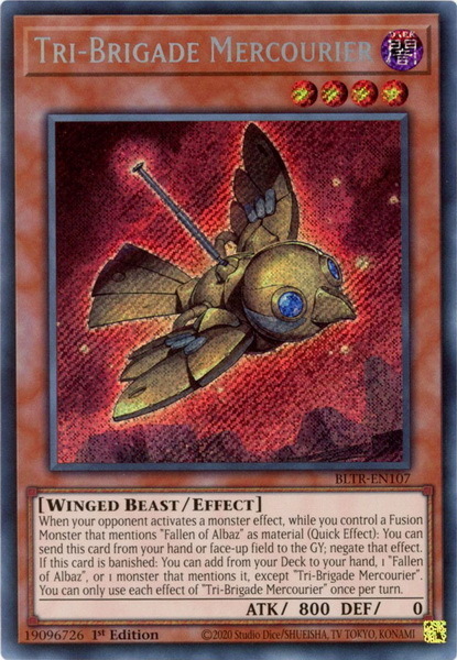 - BLTR-EN107 Tri-Brigade Mercourier : Secret Rare 1st Edition YuGiOh Card