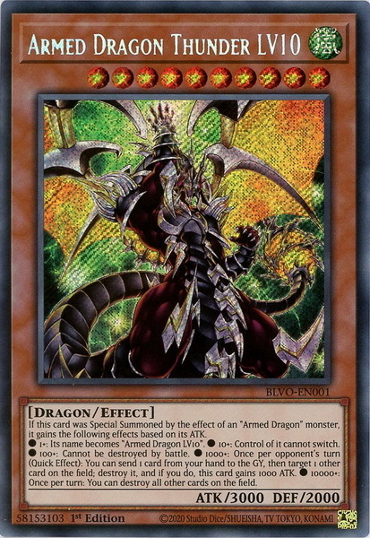 - BLVO-EN001 Armed Dragon Thunder LV10 Secret Rare 1st Edition Mint YuGiOh Card