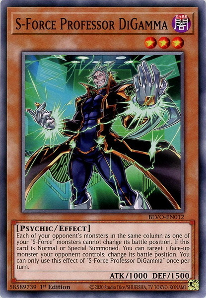 - BLVO-EN012 S-Force Professor DiGamma Common 1st Edition Mint Yu-Gi-Oh! Card