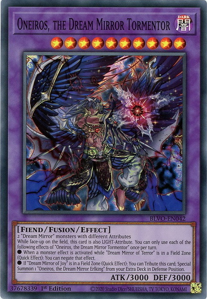 - BLVO-EN042 Oneiros, the Dream Mirror Tormentor Super Rare 1st Edition Mint YuGiOh Card