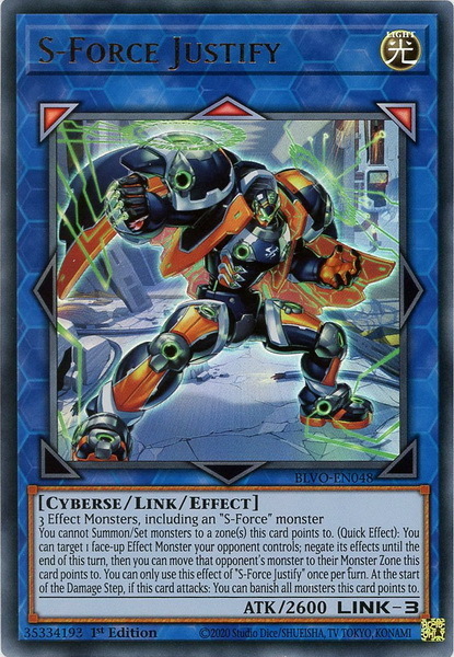 - BLVO-EN048 S-Force Justify Ultra Rare 1st Edition Mint YuGiOh Card