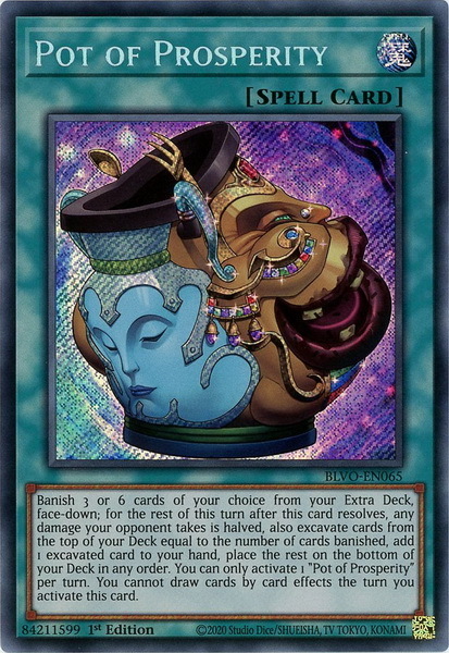 - BLVO-EN065 Pot of Prosperity Secret Rare 1st Edition Mint YuGiOh Card