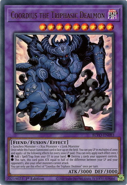 - BLVO-EN083 Coordius the Triphasic Dealmon Ultra Rare 1st Edition Mint YuGiOh Card