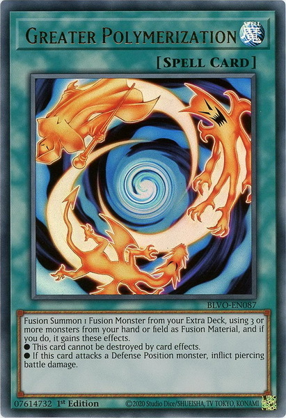 - BLVO-EN087 Greater Polymerization Ultra Rare 1st Edition Mint YuGiOh Card