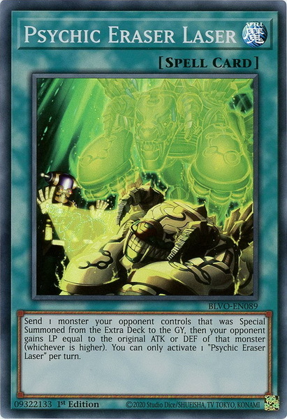 - BLVO-EN089 Psychic Eraser Laser Super Rare 1st Edition Mint YuGiOh Card