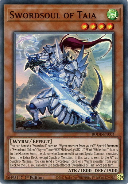 - BODE-EN004 Swordsoul of Taia Super Rare 1st Edition Mint YuGiOh Card