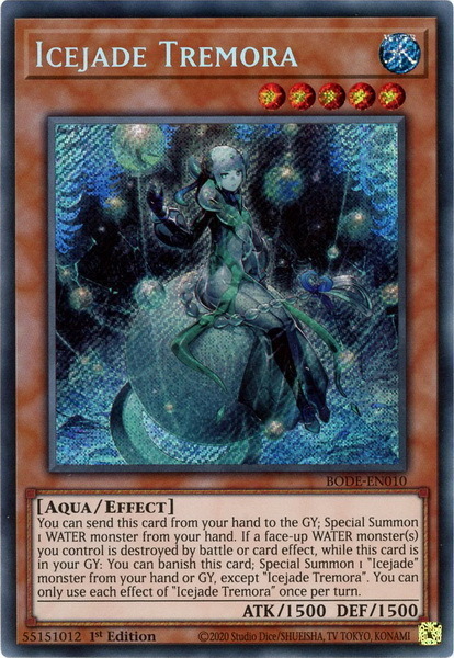 - BODE-EN010 Icejade Tremora Secret Rare 1st Edition Mint YuGiOh Card