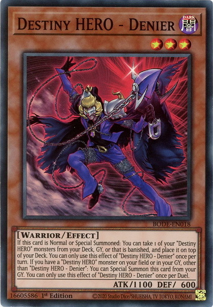 - BODE-EN018 Destiny HERO - Denier Super Rare 1st Edition Mint YuGiOh Card