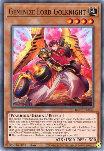 - BODE-EN032 Geminize Lord Golknight : Common : 1st Edition Mint YuGiOh Card