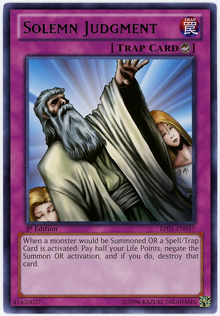 - BP01-EN047 Solemn Judgment : Starfoil Rare 1st Edition Mint YuGiOh Card